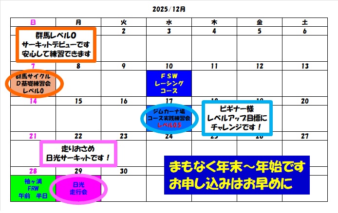 お知らせ 20260103(土) 富士レーシングコースにつきまして
