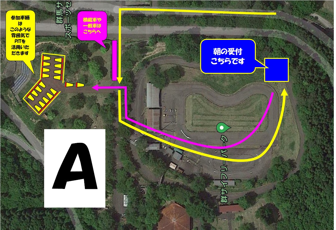 B・他の方の走行シーン見学したいときなどは 通路兼駐車スペースへ