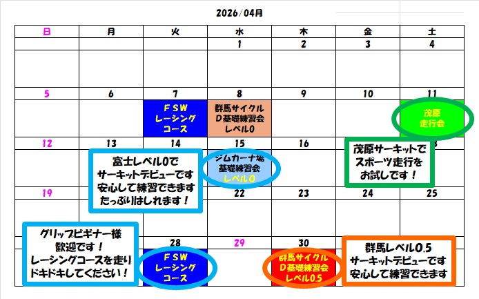 0407(火) 0428(火) 富士本コース ゆったり走行会