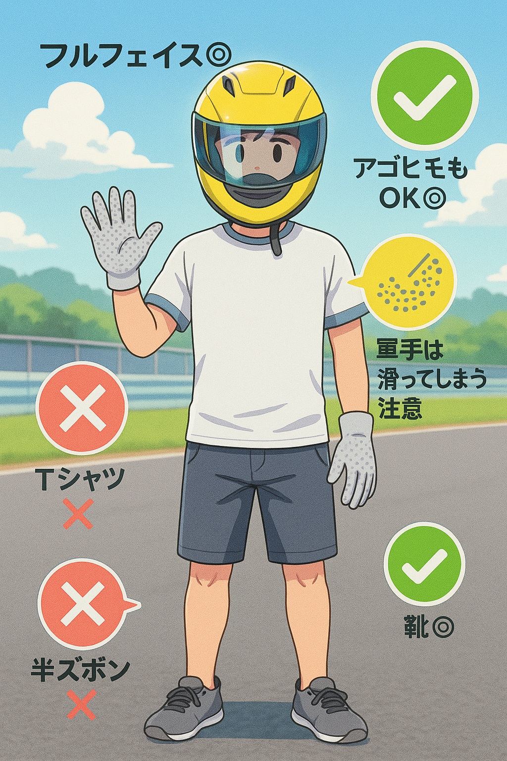 サーキット走行は上記説明のようにシューズ必須です