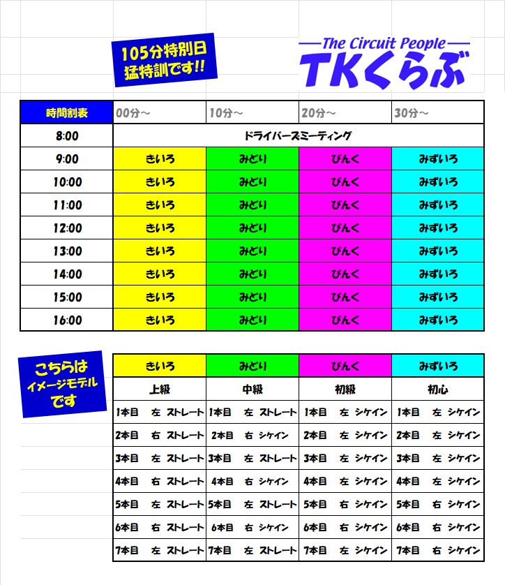 日曜日開催のスケジュールです