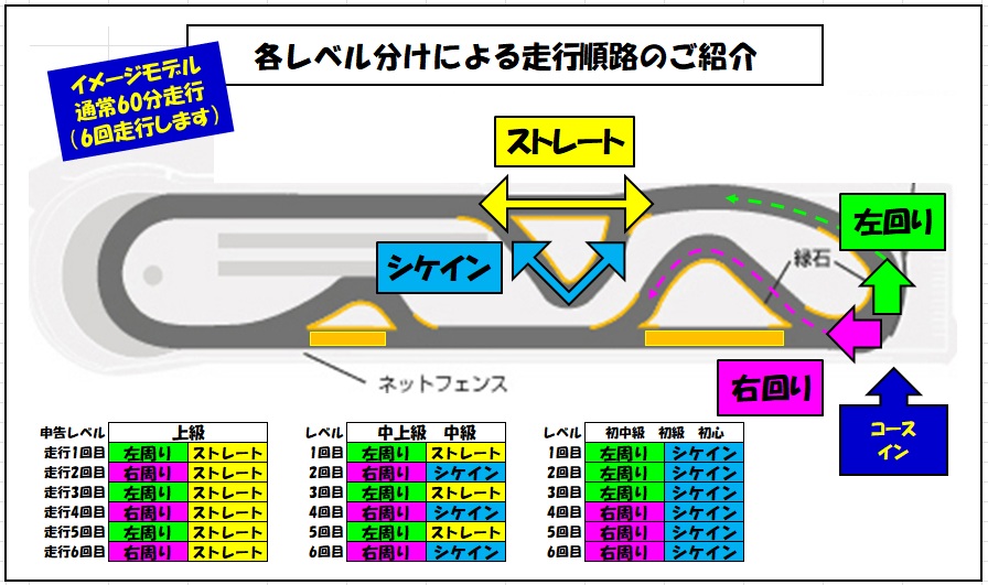 中級者クラスは 6回の走行を行います